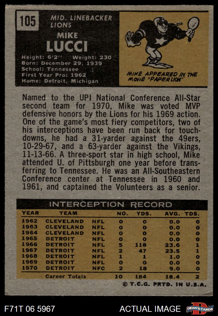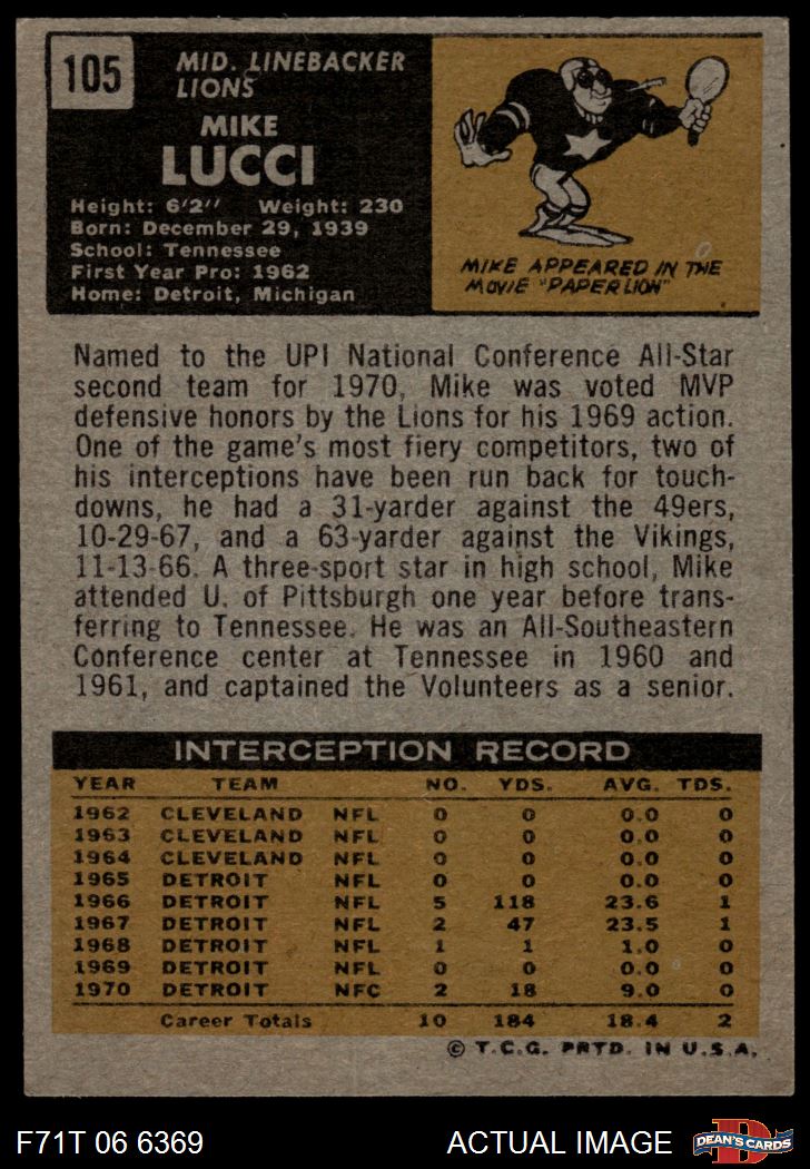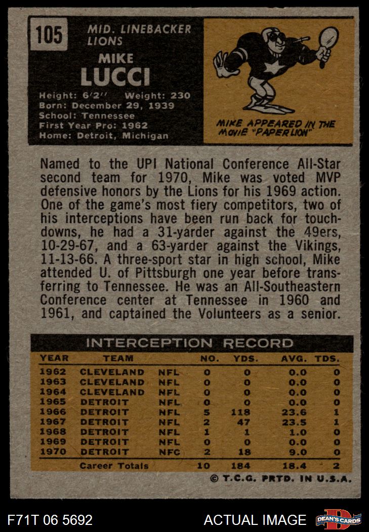 1971 Topps #105 Mike Lucci
