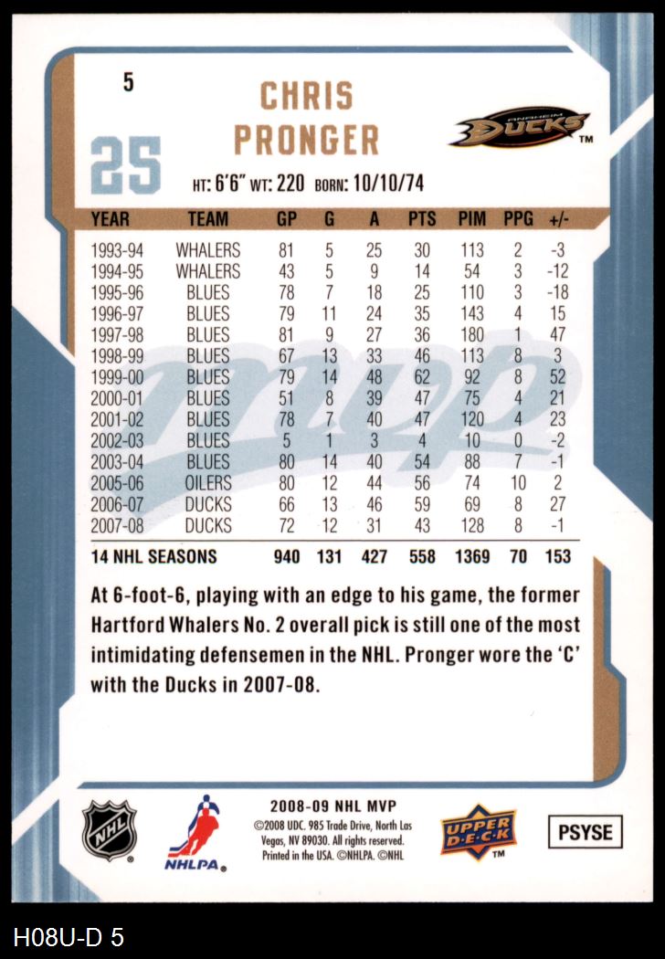 2008 Upper Deck MVP #5 Chris Pronger
