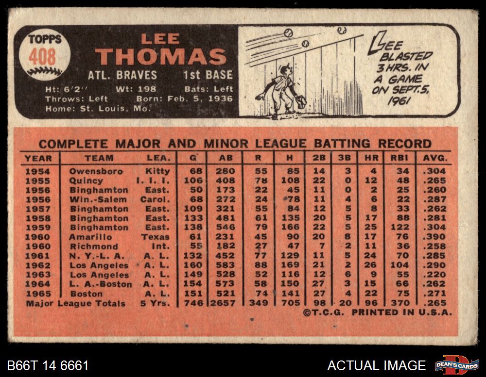 1966 Topps #408 Lee Thomas 1.5 - FAIR