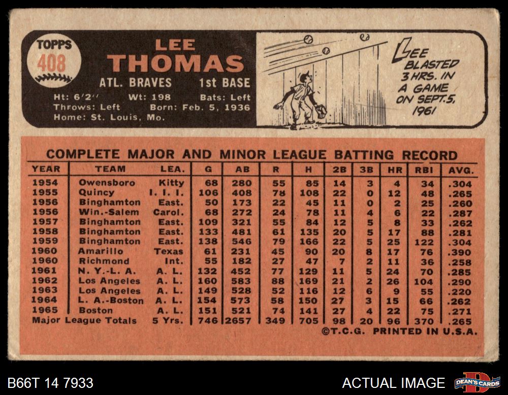 1966 Topps #408 Lee Thomas 2 - GOOD