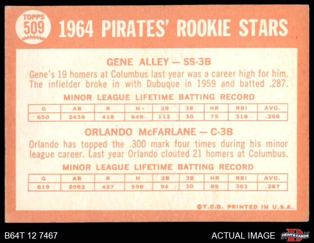 1964 Topps #509  -  Gene Alley / Orlando McFarlane Pirates Rookies Front Thumbnail