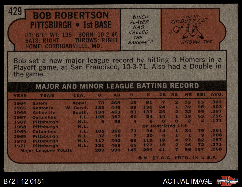 1972 Topps #429 Bob Robertson 6 - EX/MT