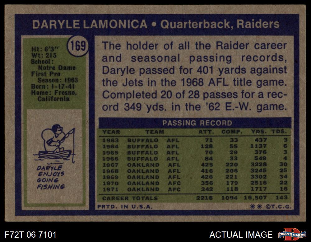 1972 Topps #169 Daryle Lamonica 2 - GOOD