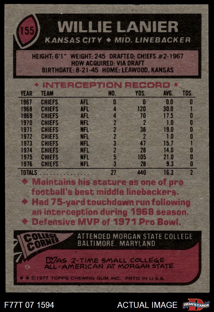 1977 Topps #155 Willie Lanier