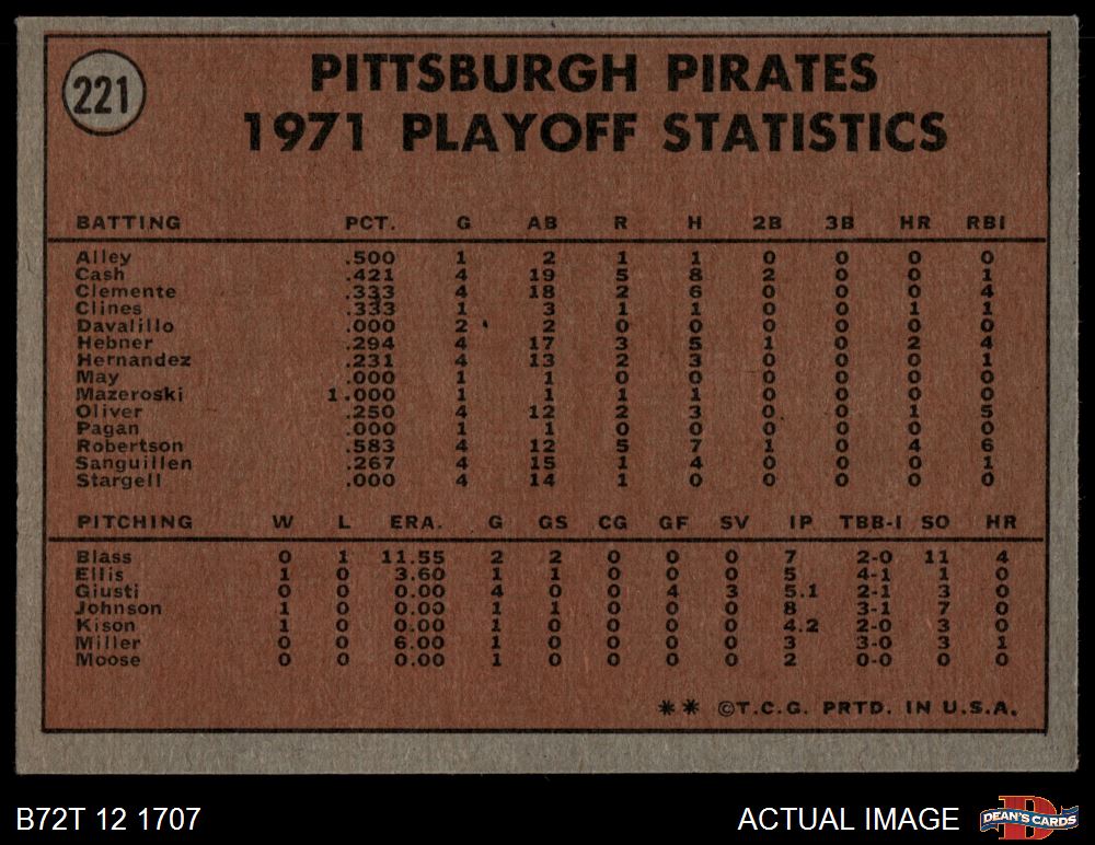 1972 Topps Baseball Cards (14,208 available)1972 Topps Pirates (874 available)