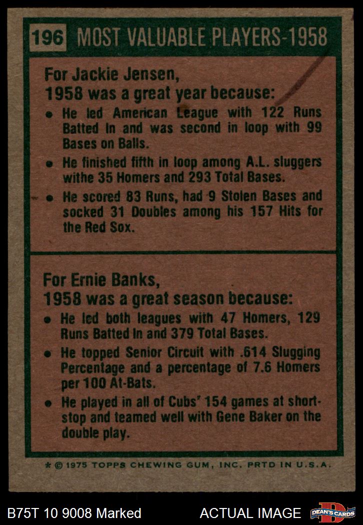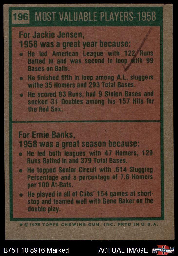 1975 Topps #196 - Jackie Jensen / Ernie Banks 1958 MVPs 1.5 - FAIR