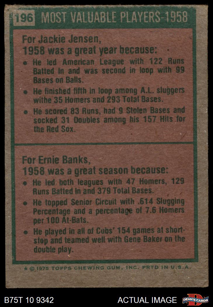 1975 Topps #196 - Jackie Jensen / Ernie Banks 1958 MVPs 2 - GOOD