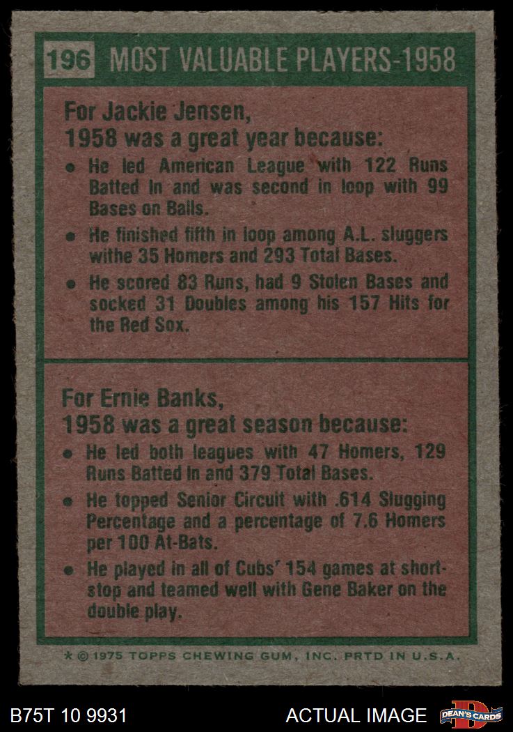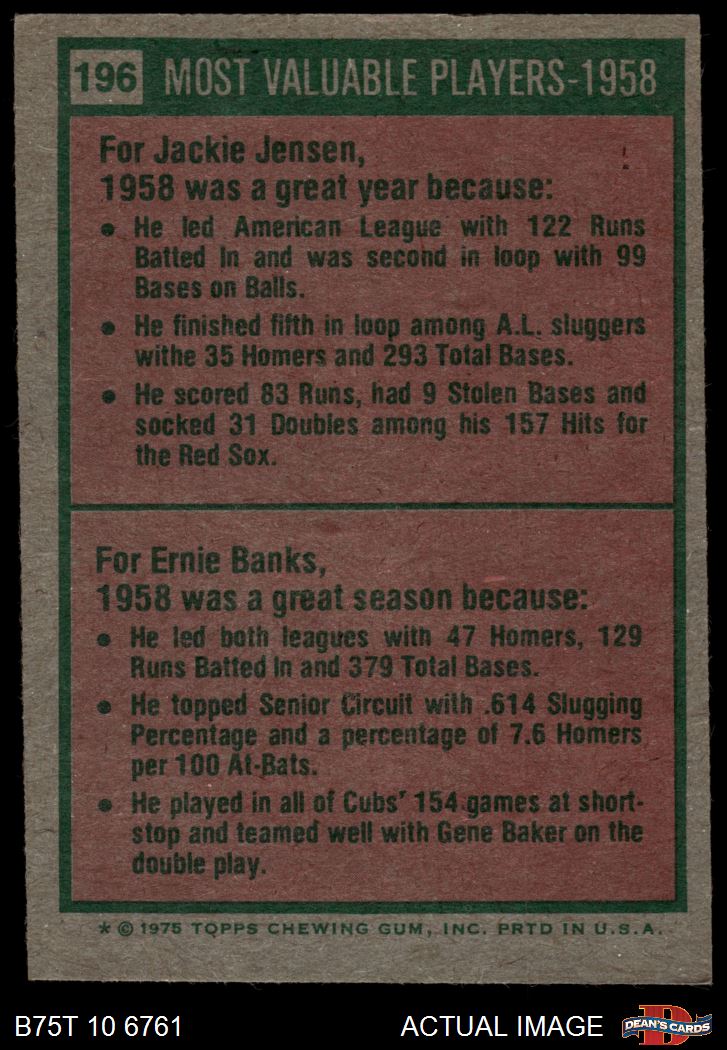 1975 Topps #196 - Jackie Jensen / Ernie Banks 1958 MVPs 5 - EX