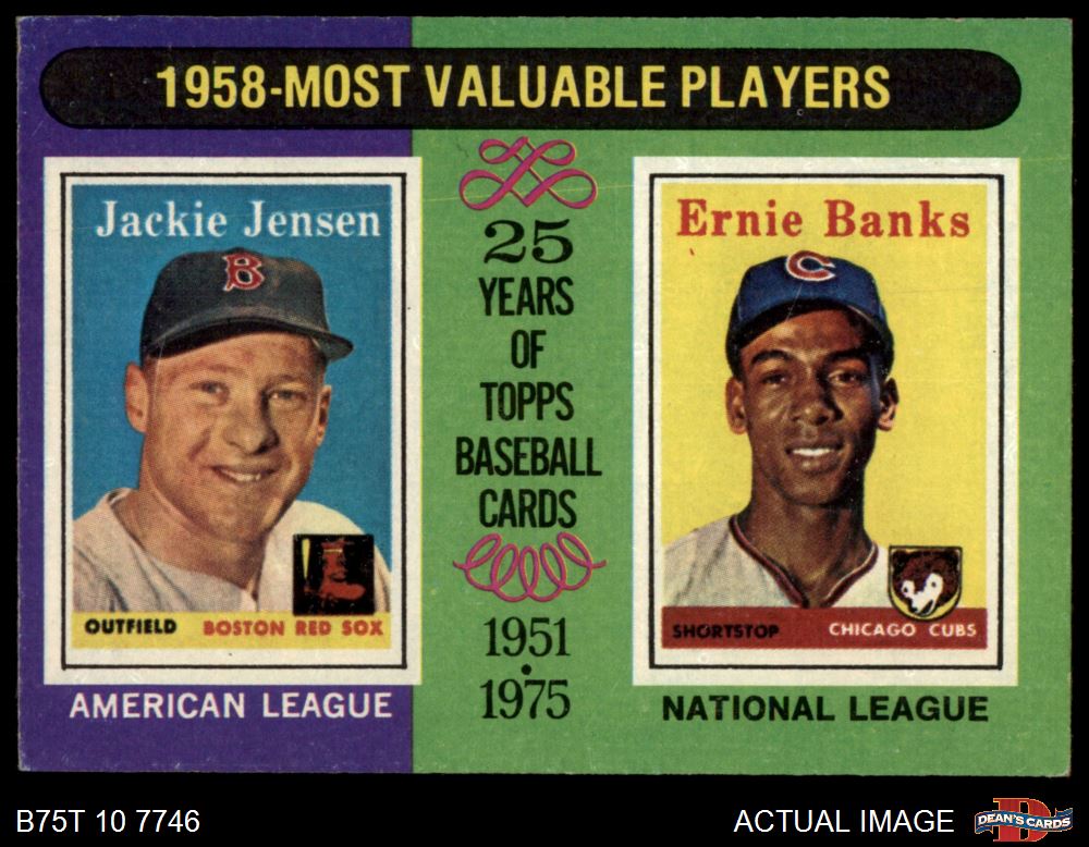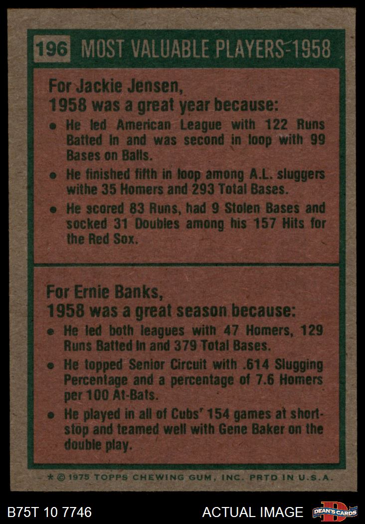 1975 Topps #196 - Jackie Jensen / Ernie Banks 1958 MVPs 6 - EX/MT