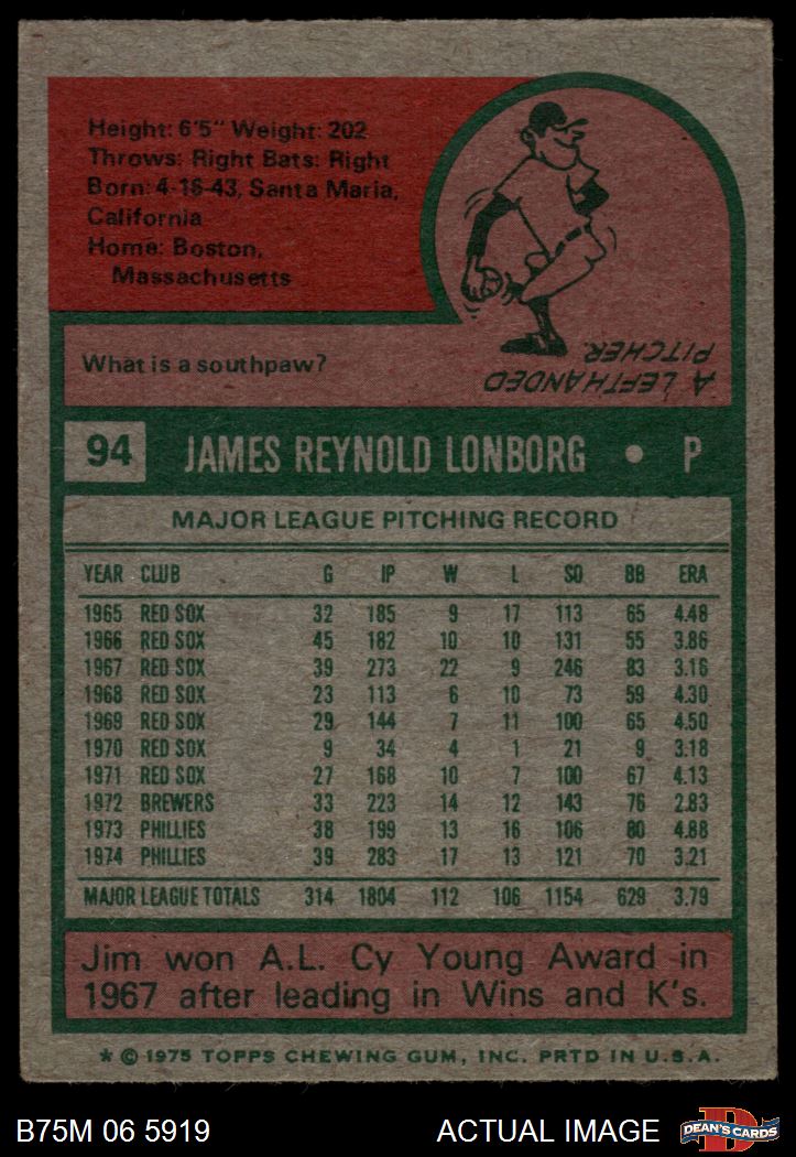 1975 Topps Mini #94 Jim Lonborg
