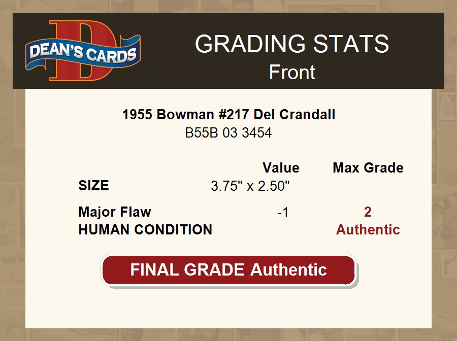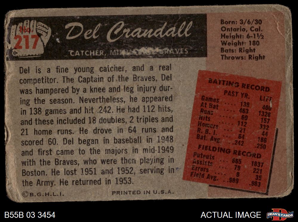 1955 Bowman #217 Del Crandall AUTHENTIC
