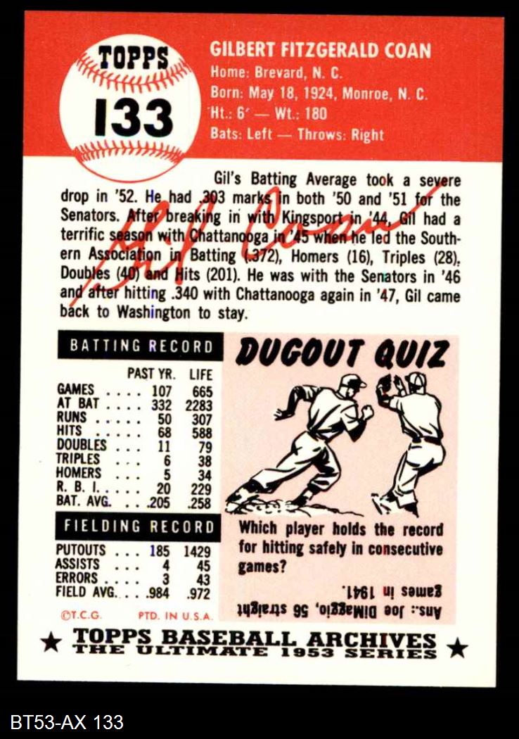 1953 Topps Archives / Reprint (1,680 available)1953 Topps Archives Senators (66 available)