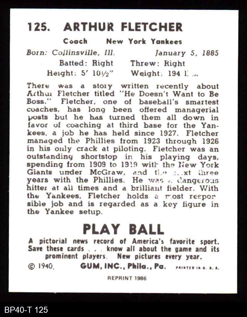 1940 Play Ball Reprint #125 Art Fletcher 8 - NM/MT
