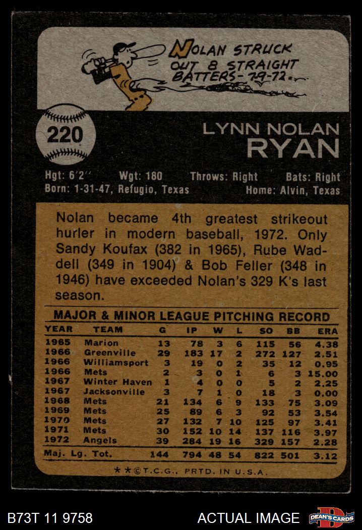 1973 Topps #220 Nolan Ryan 3 - VG