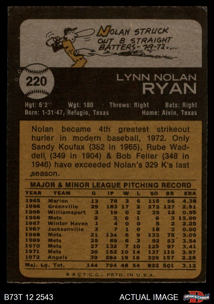 1973 Topps #220 Nolan Ryan 4 - VG/EX