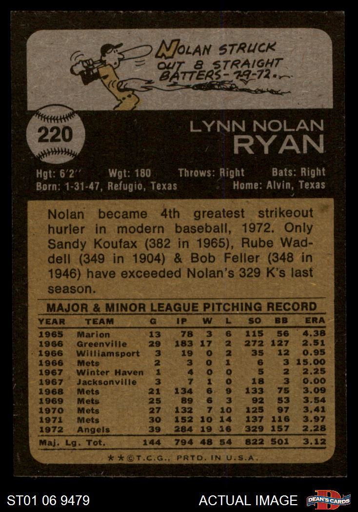 1973 Topps #220 Nolan Ryan 8 - NM/MT