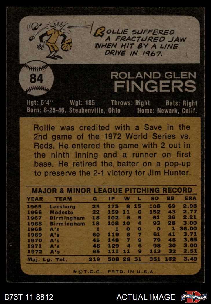 1973 Topps #84 Rollie Fingers 5.5 - EX+