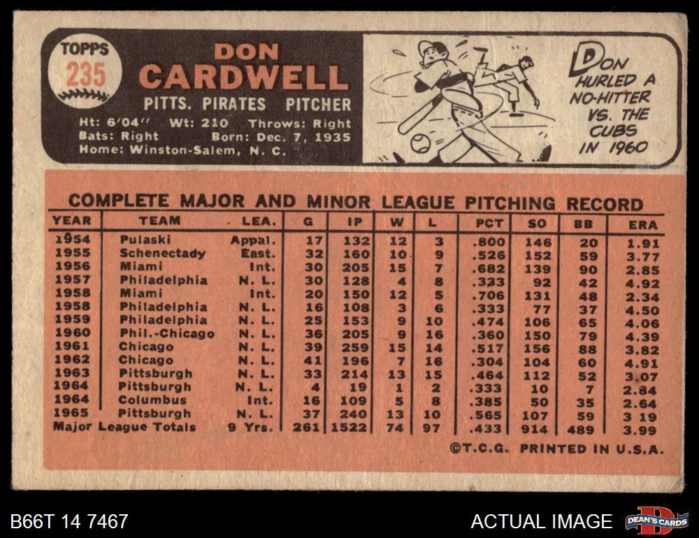 1966 Topps #235 Don Cardwell 1.5 - FAIR