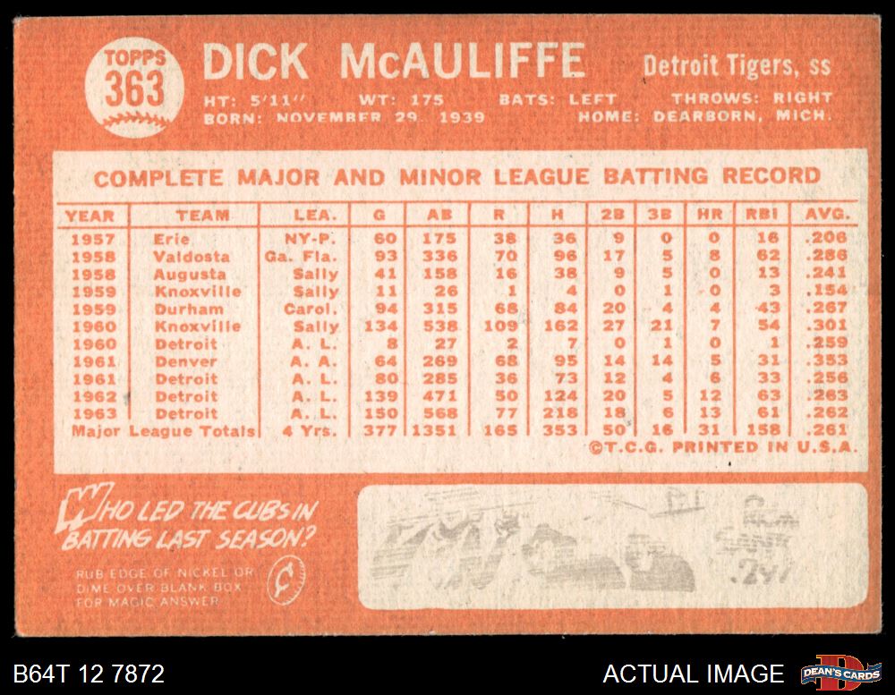 1964 Topps #363 Dick McAuliffe