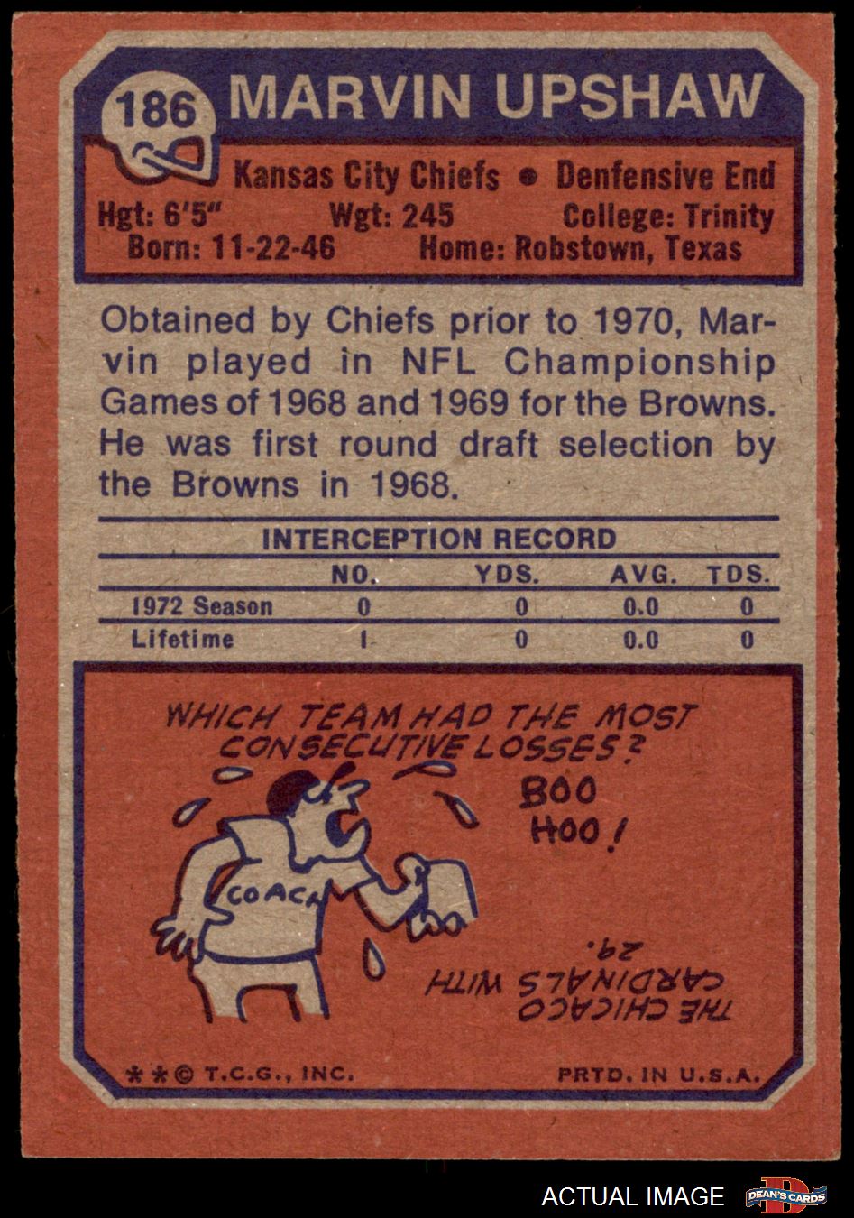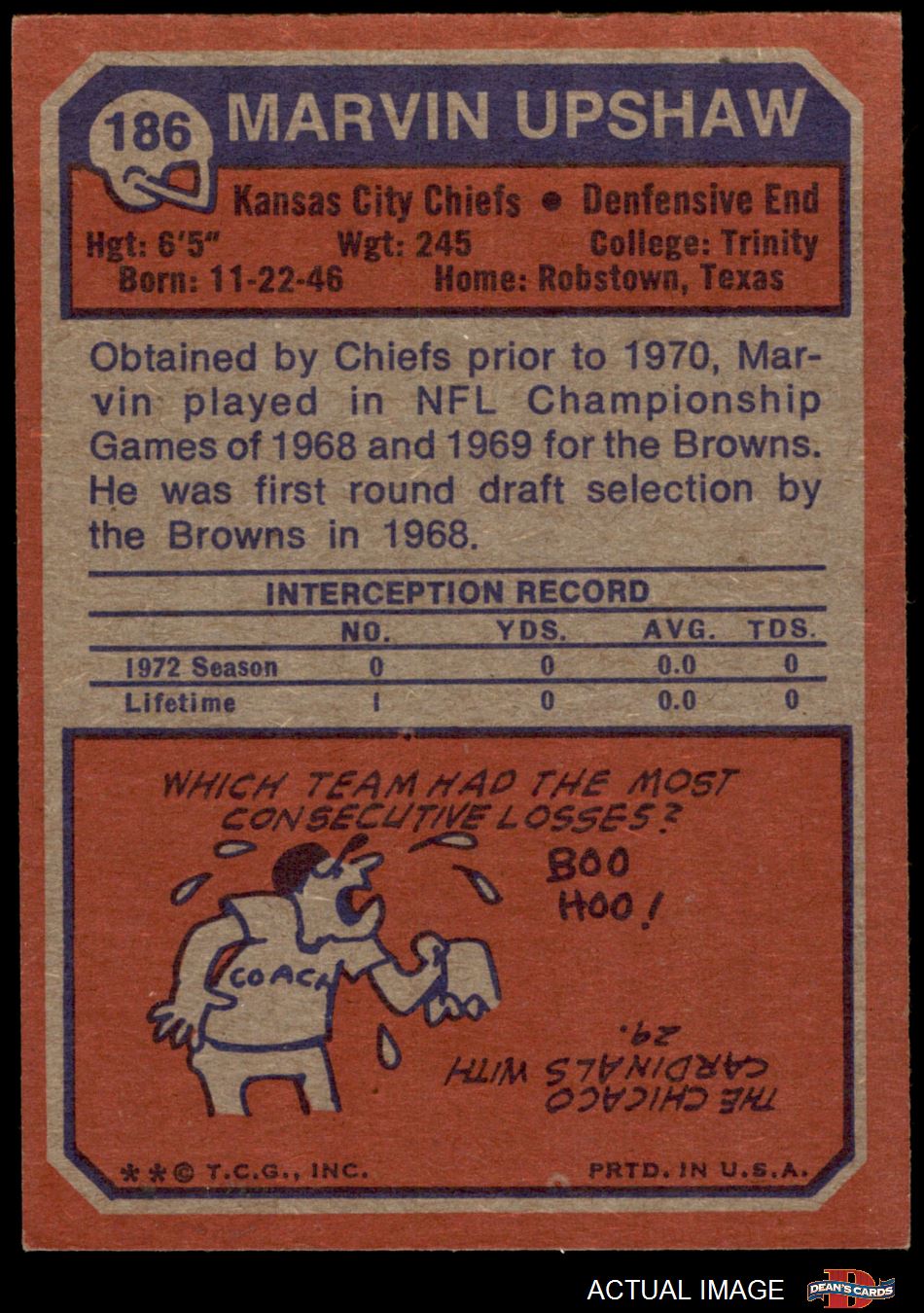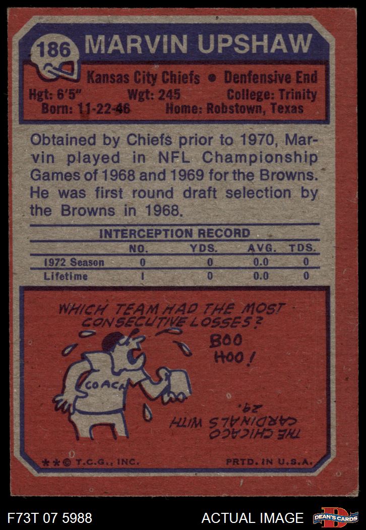 1973 Topps #186 Marvin Upshaw 5 - EX