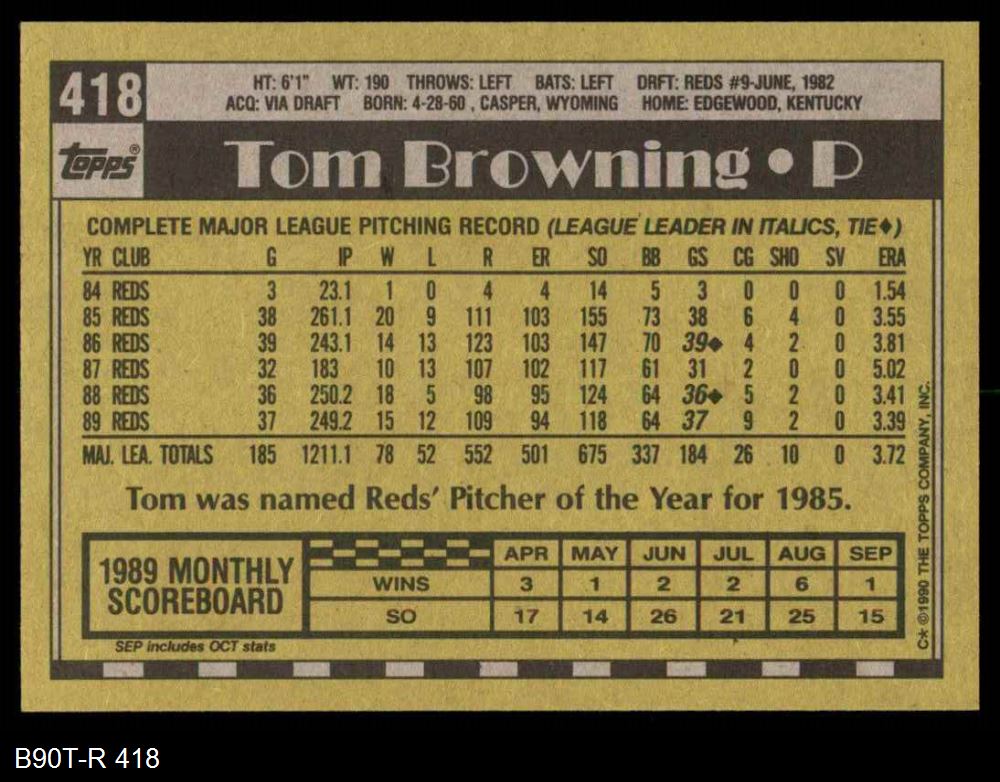 1990 Topps #418 Tom Browning