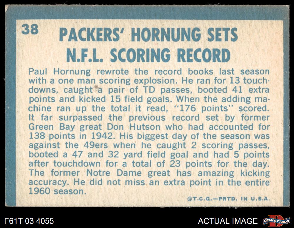 1961 Topps #38 - Paul Hornung 1960 Football Highlights 5 - EX