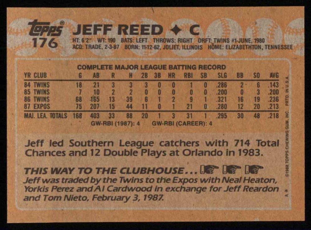 1988 Topps #176 Jeff Reed 8 - NM/MT