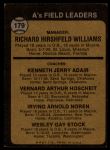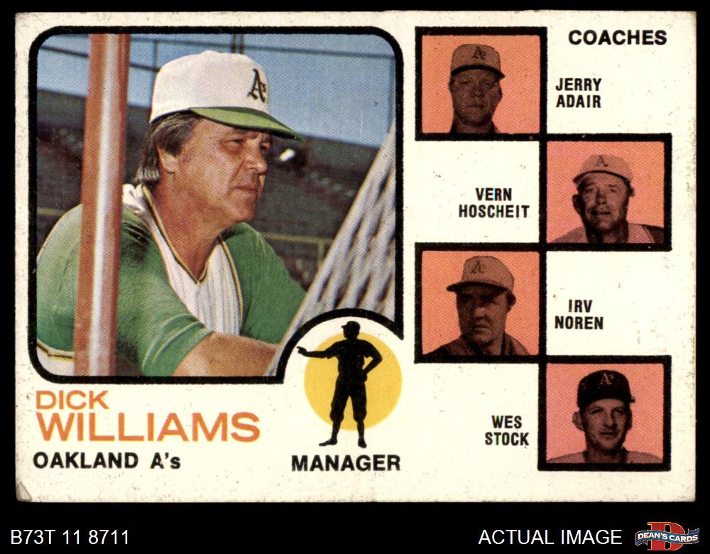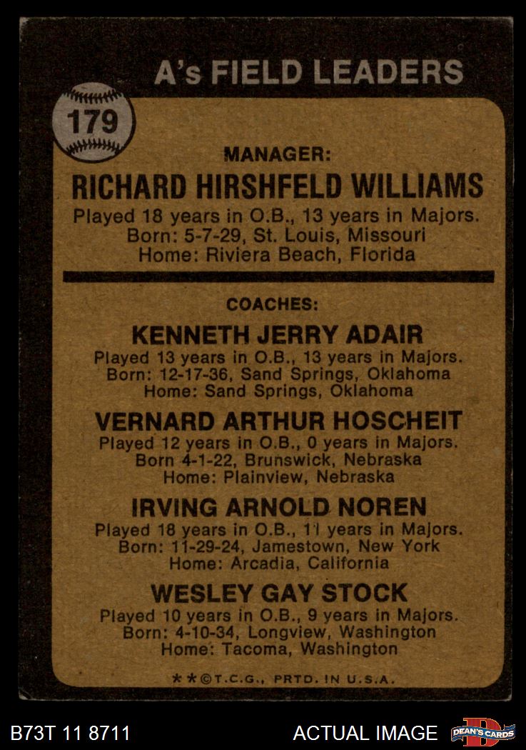 1973 Topps #179 xEAR - Dick Williams / Jerry Adair / Vern Hoscheit / Irv Noren / Wes Stock A's Leaders 2 - GOOD