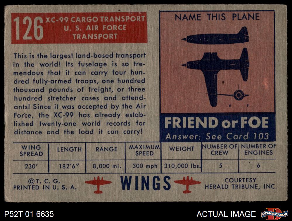 1952 Topps Wings #126 XC-99 Cargo transport