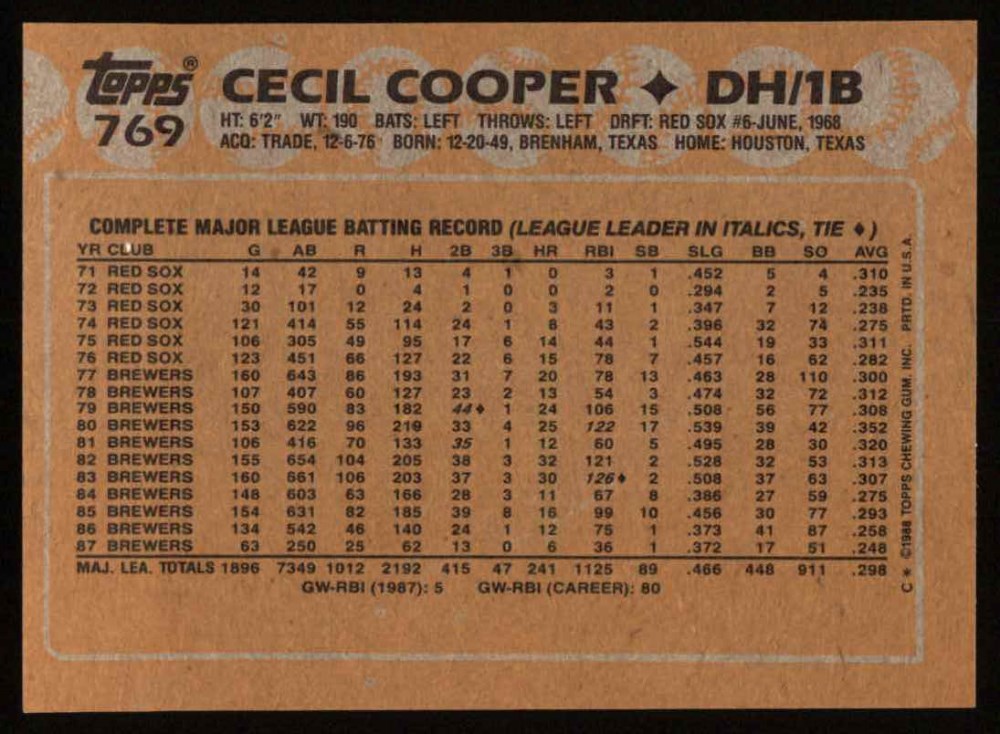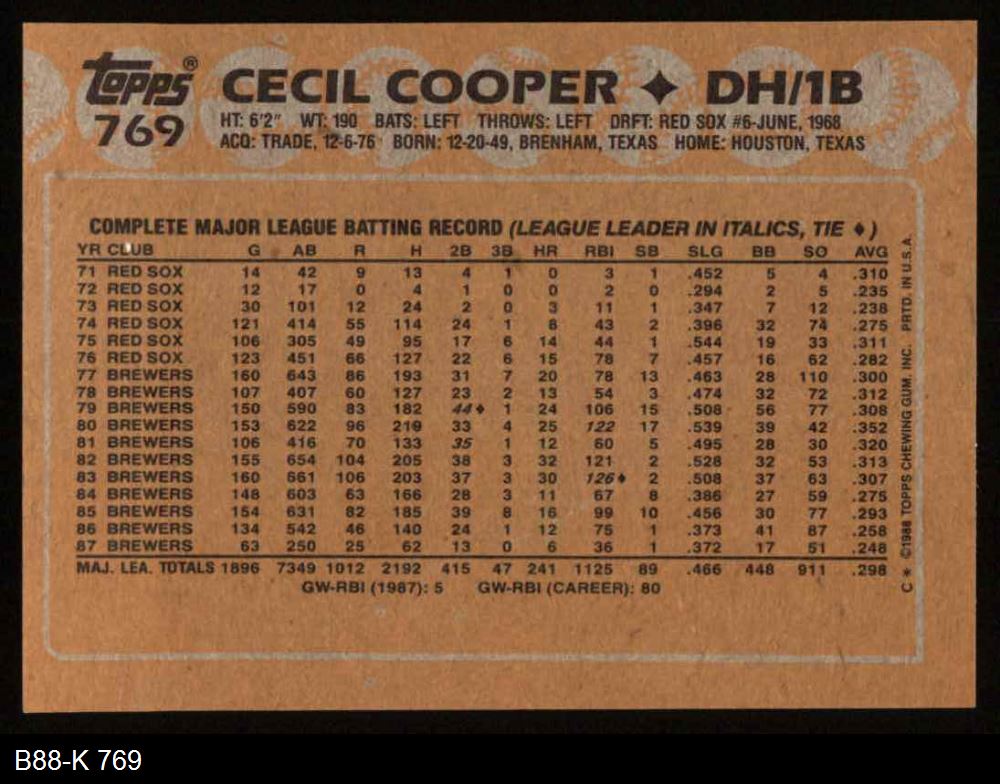 1988 Topps #769 Cecil Cooper