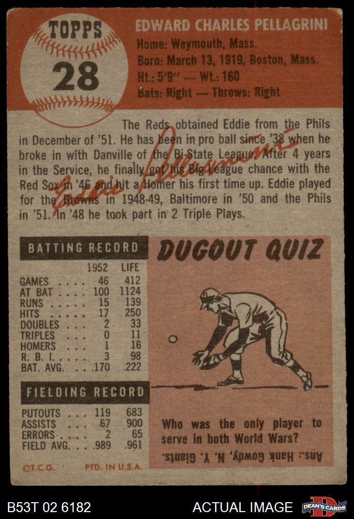 1953 Topps #28 Eddie Pellagrini 3 - VG
