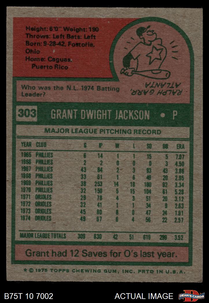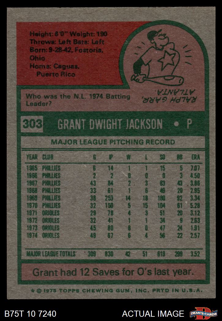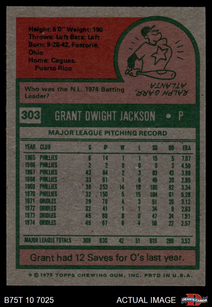 1975 Topps #303 Grant Jackson