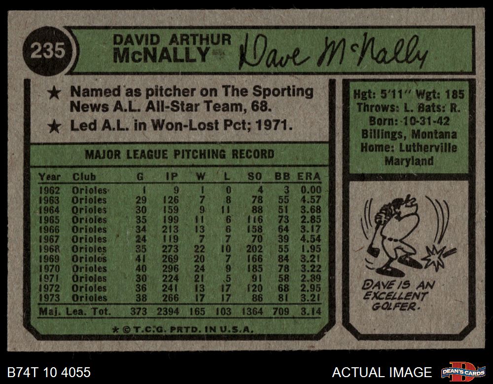 1974 Topps #235 Dave McNally