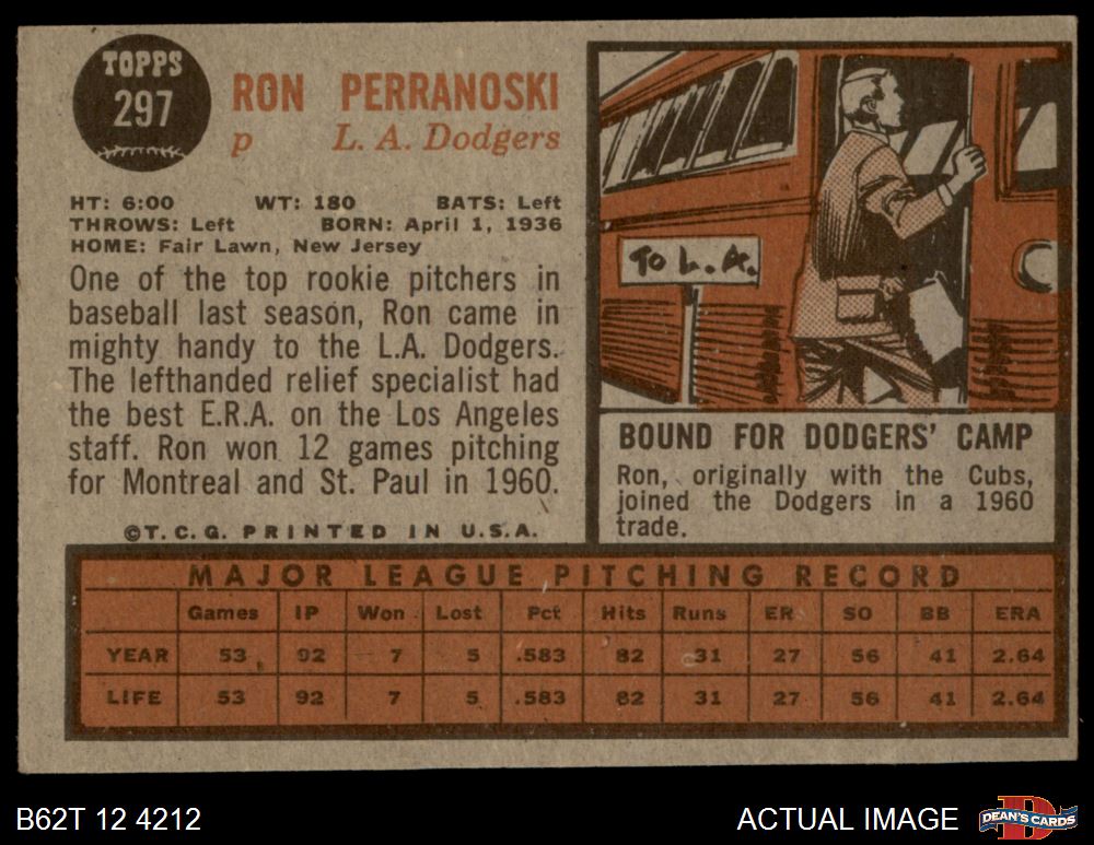 1962 Topps #297 Ron Perranoski Front Thumbnail