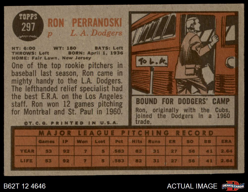 1962 Topps #297 Ron Perranoski 4 - VG/EX