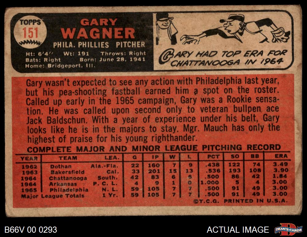 1966 Topps Venezuelan #151 Gary Wagner 1.5 - FAIR