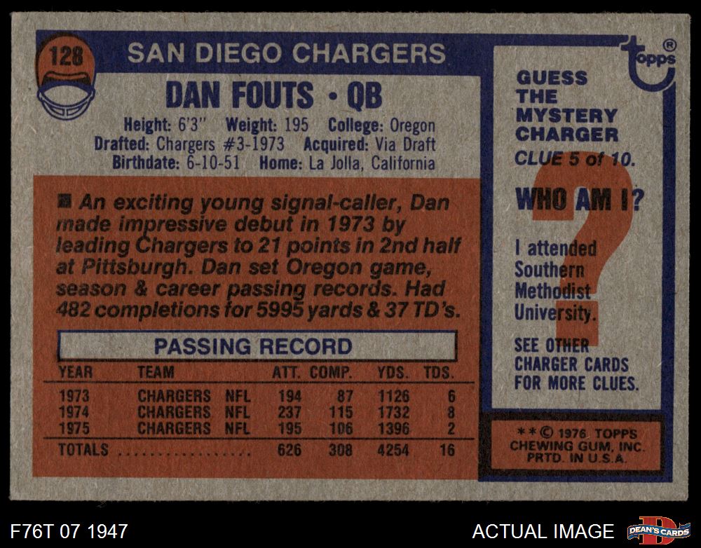 1976 Topps #128 Dan Fouts 3 - VG