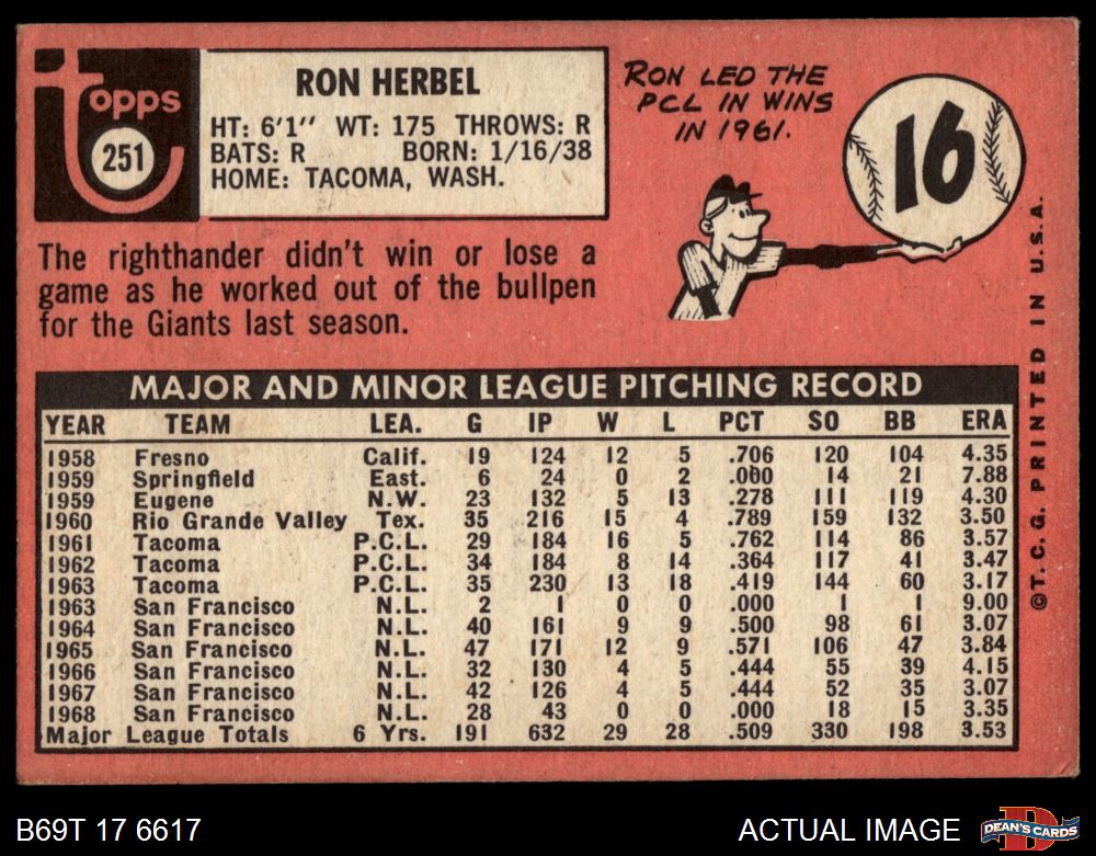 1969 Topps #251 Ron Herbel