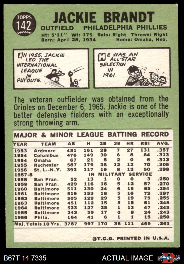 1967 Topps #142 Jackie Brandt 6 - EX/MT