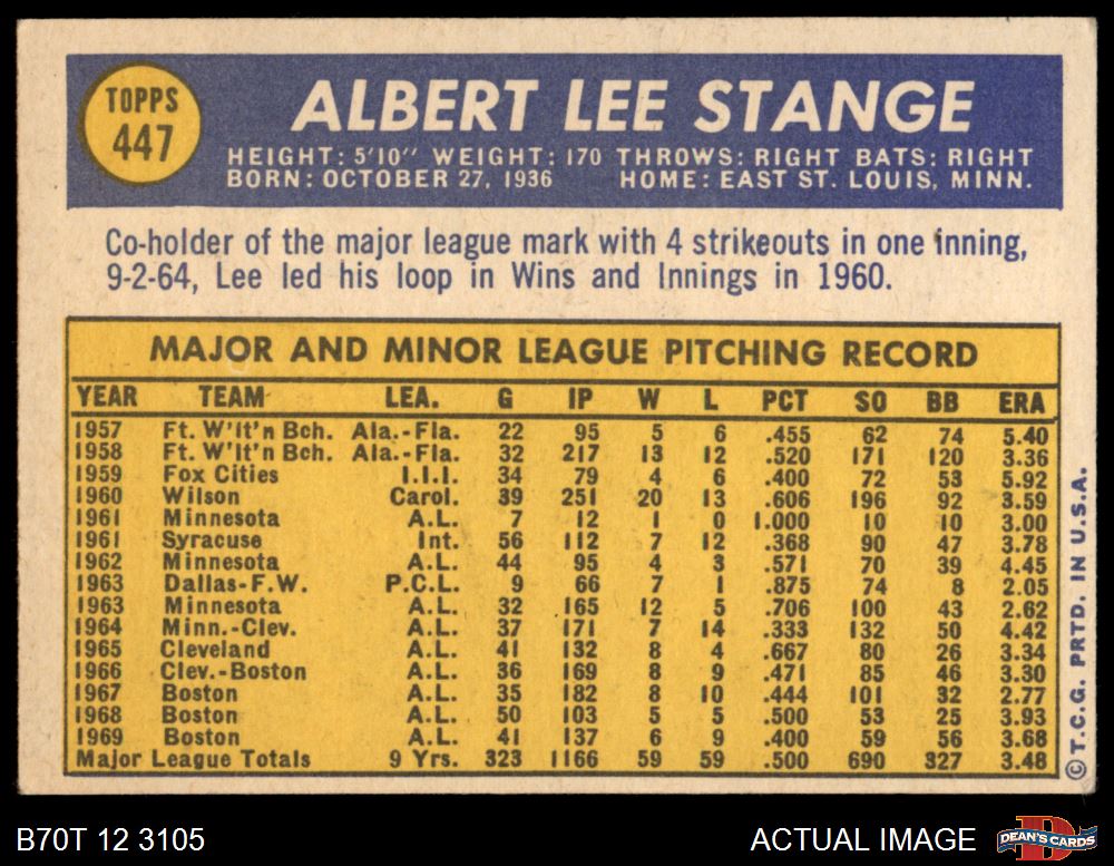 1970 Topps #447 Lee Stange