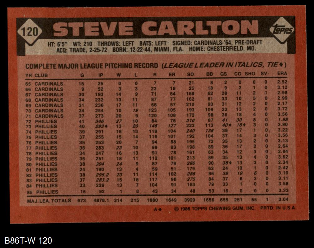 1986 Topps #120 Steve Carlton 8 - NM/MT