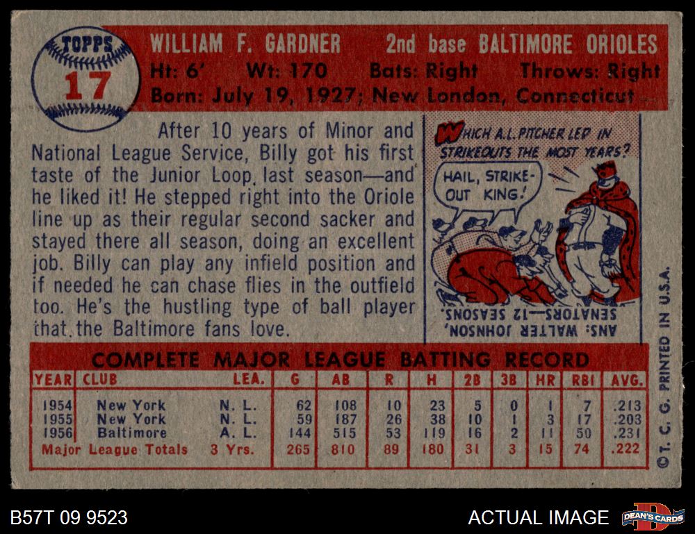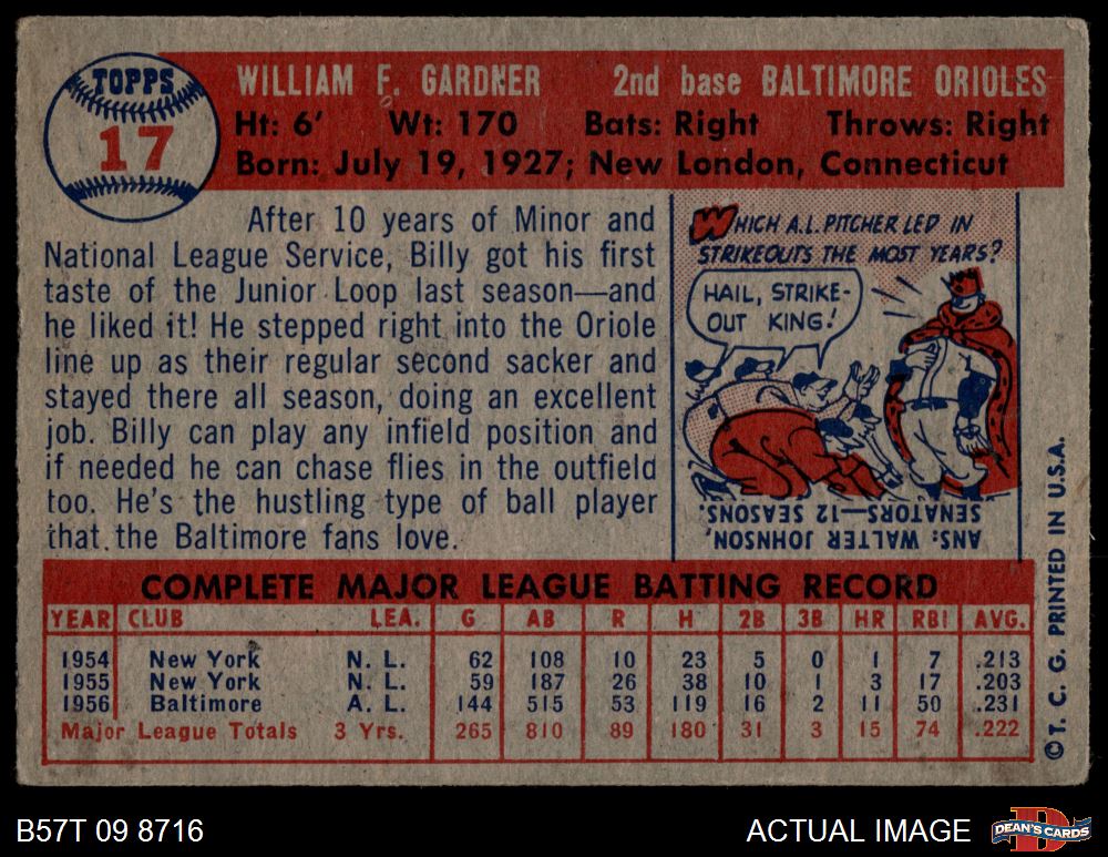 1957 Topps #17 Billy Gardner 2 - GOOD