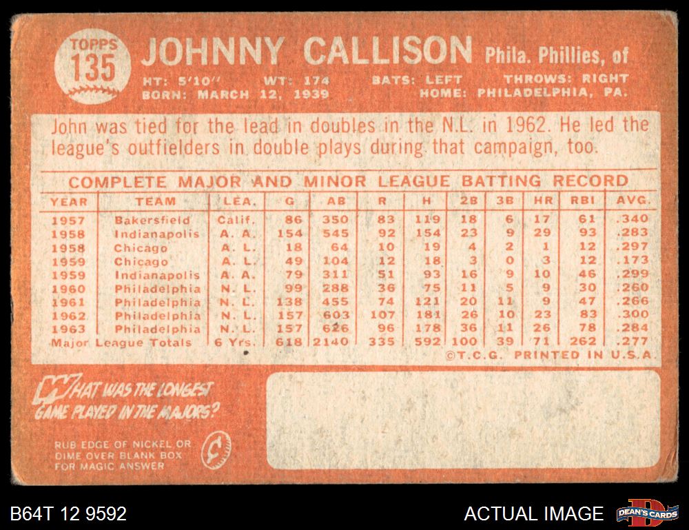 1964 Topps #135 Johnny Callison 1.5 - FAIR