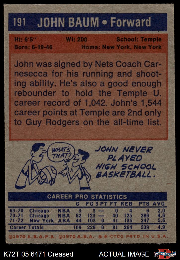 1972 Topps #191 John Baum 3 - VG