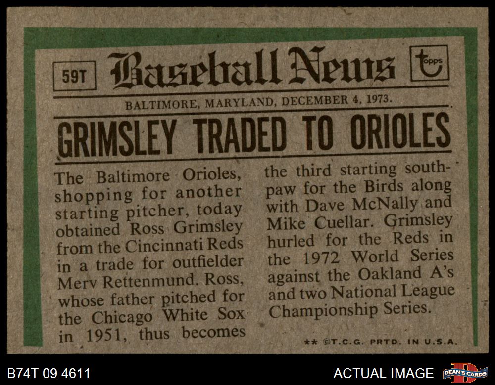 1974 Topps Traded #59 T - Ross Grimsley Traded 5 - EX