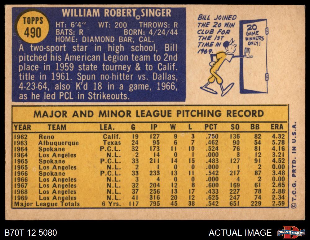 1970 Topps #490 Bill Singer 4 - VG/EX