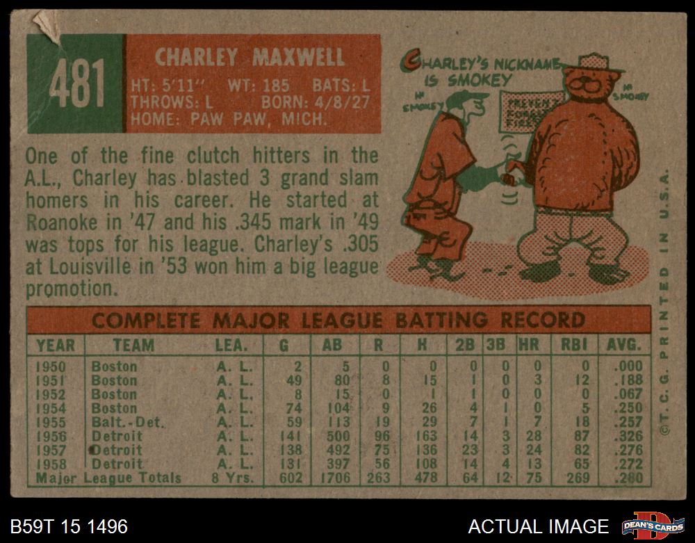 1959 Topps #481 Charley Maxwell 1 - POOR
