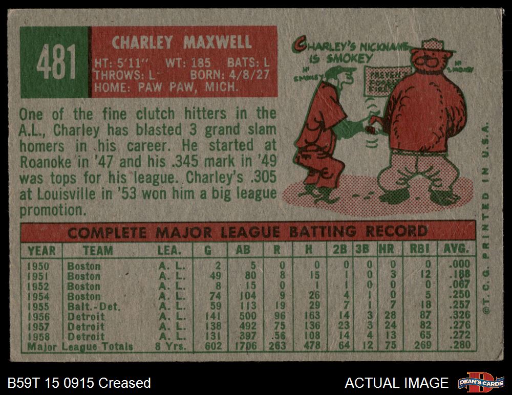 1959 Topps #481 Charley Maxwell Front Thumbnail