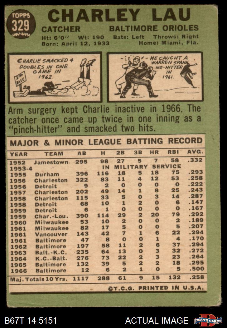 1967 Topps #329 Charlie Lau 1 - POOR