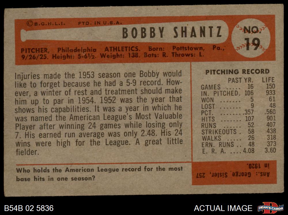 1954 Bowman #19 Bobby Shantz 3.5 - VG+